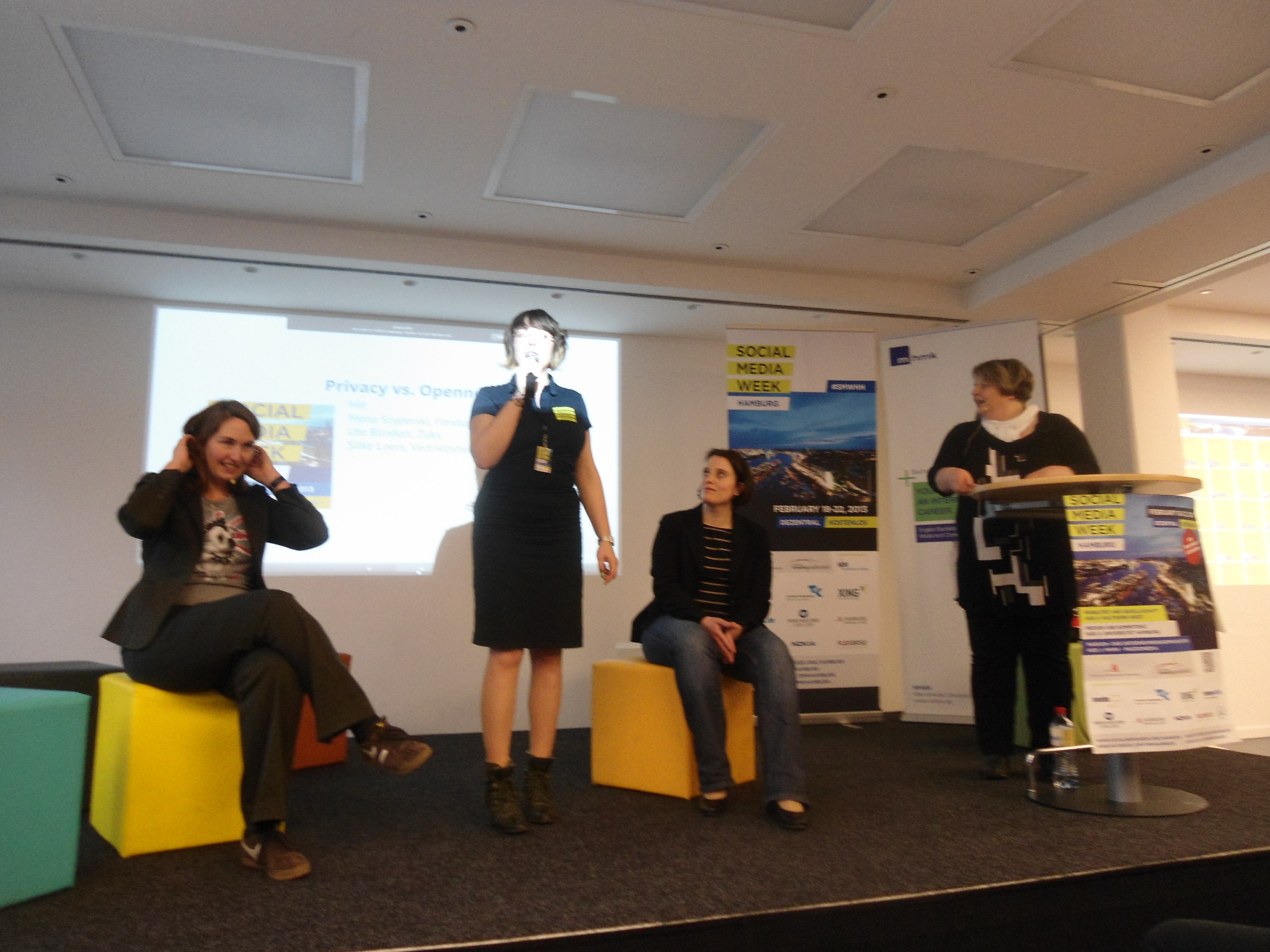 Sehr lebendig kam Silke Loers mit der Diskussion „Privacy vs. Openness. Was nutzt mir Social Media als Arbeitnehmer?“ mit Ute Blindert und Mona Szyperski daher. Was darf Arbeitnehmer, was sollte Arbeitnehmer und wo sind die Fallen? Gute Interaktionen mit dem Publikum.