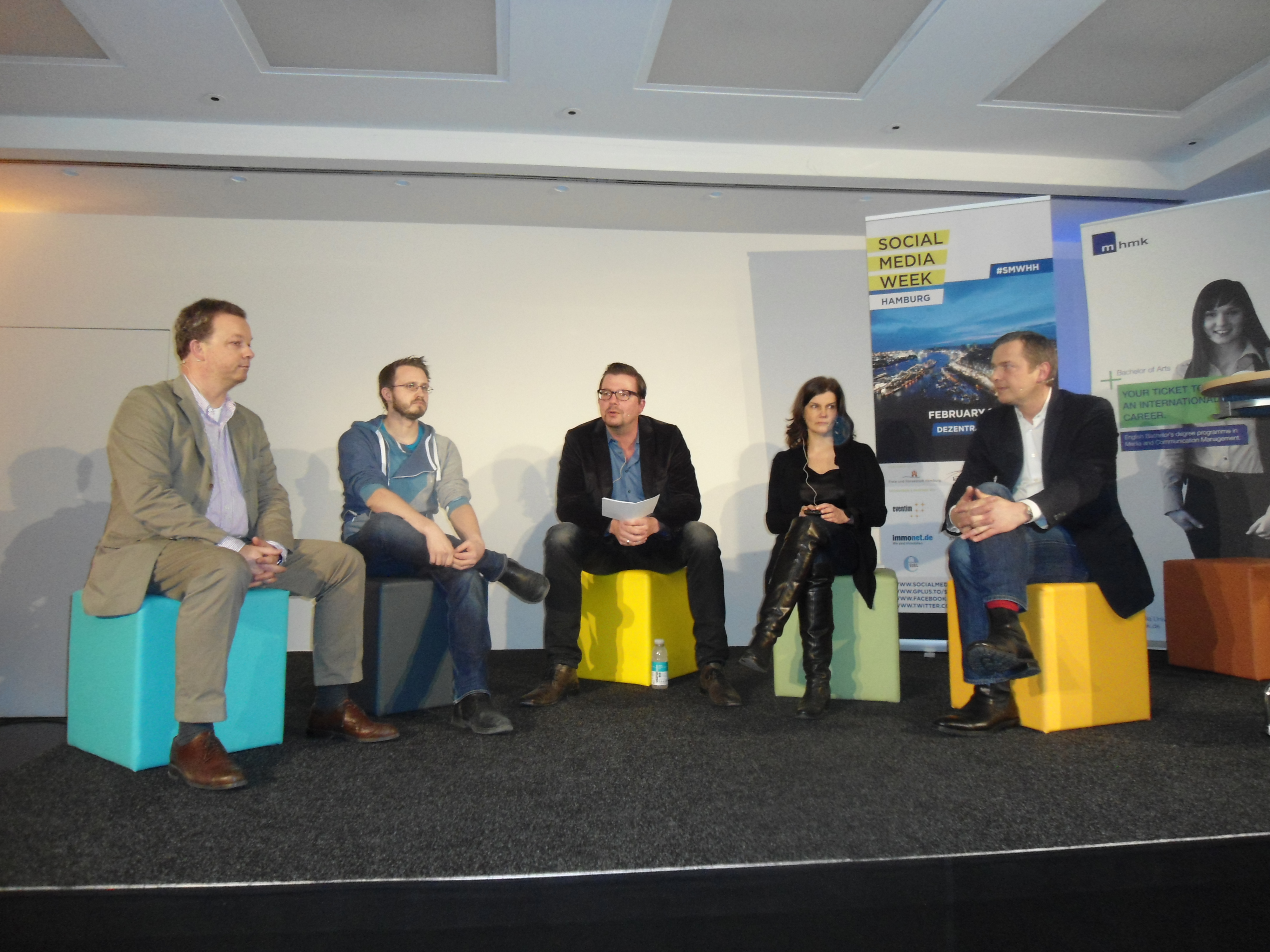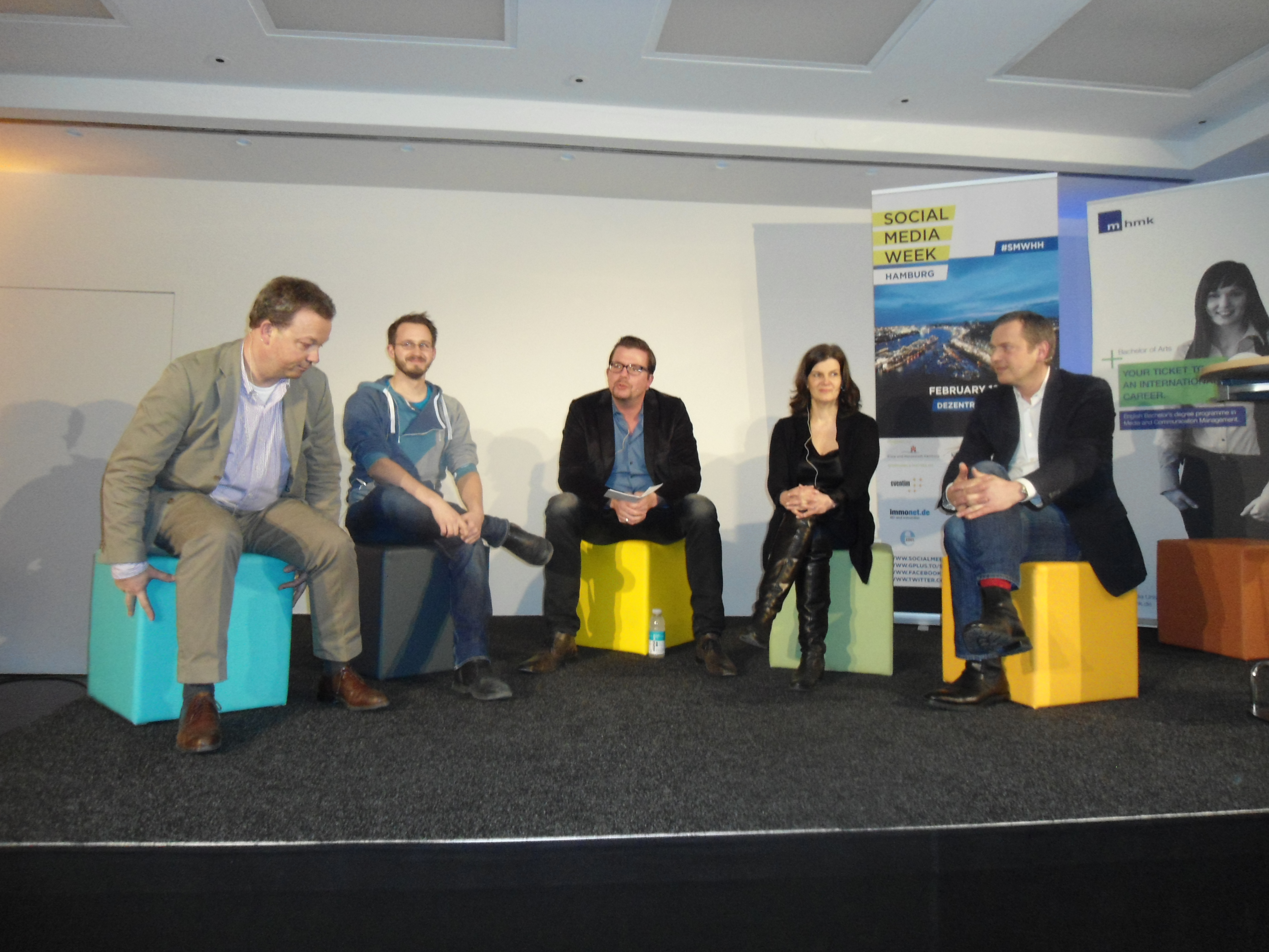 Etwas schleppend kam die Podiumsdiskusssion „Noch 148 Mails checken: Wie sozial sind die Sozialen Medien?“ daher. Es wirkte gequält. Oder lag es an der Uhrzeit? Ralf Nehmzow (Hamburger Abendblatt), Markus Bertling (@HerrBertling), Mirko Kaminski (Agentur achtung!), Bettina Hennig (Autorin,) beantworteten die Fragen von Matthias Onken. Wie sieht die Zukunft aus? Markus sieht sie in google+ (der einzige) und Ralf Nehmzow glaubt noch immer an die Printmedien. Das Publikum wurde nicht einbezogen. Die Dame neben Karl-Peter schlief denn auch mehrfach ein. Am besten gefallen in dieser Runde hat mir der Markus.